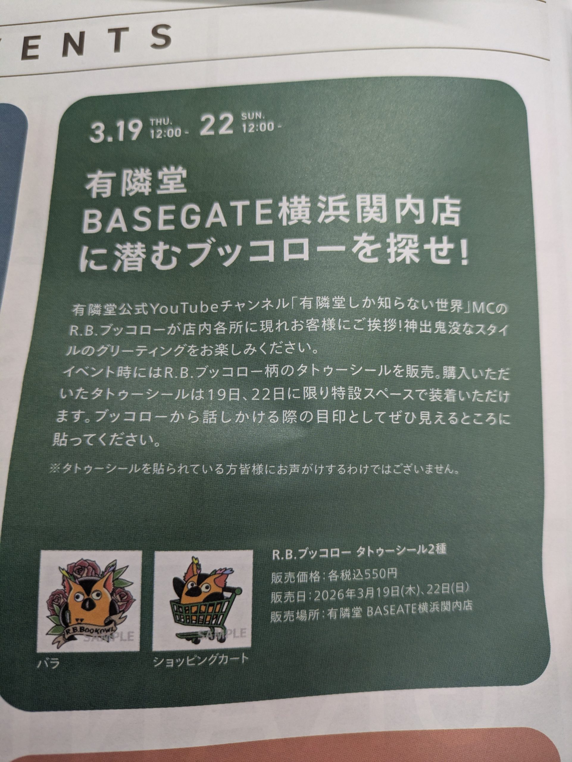 外出の時に建物の外からちらっとブッコローが見えたので、ラッキー♪
